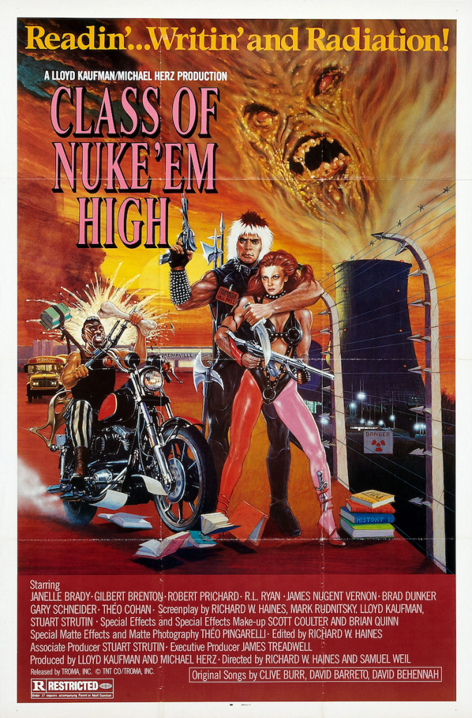 At Tromaville High School, located just a stone’s throw from the local Nuclear Power Plant, the students are getting brighter. In fact, they’re beginning to develop a Troma-green glow. Innocent students mutate into sex-crazed psychos, the Honor Society has turned into carnivorous mutants, and the slimy monster stalking the halls isn’t the principal. Unrated director’s cut!