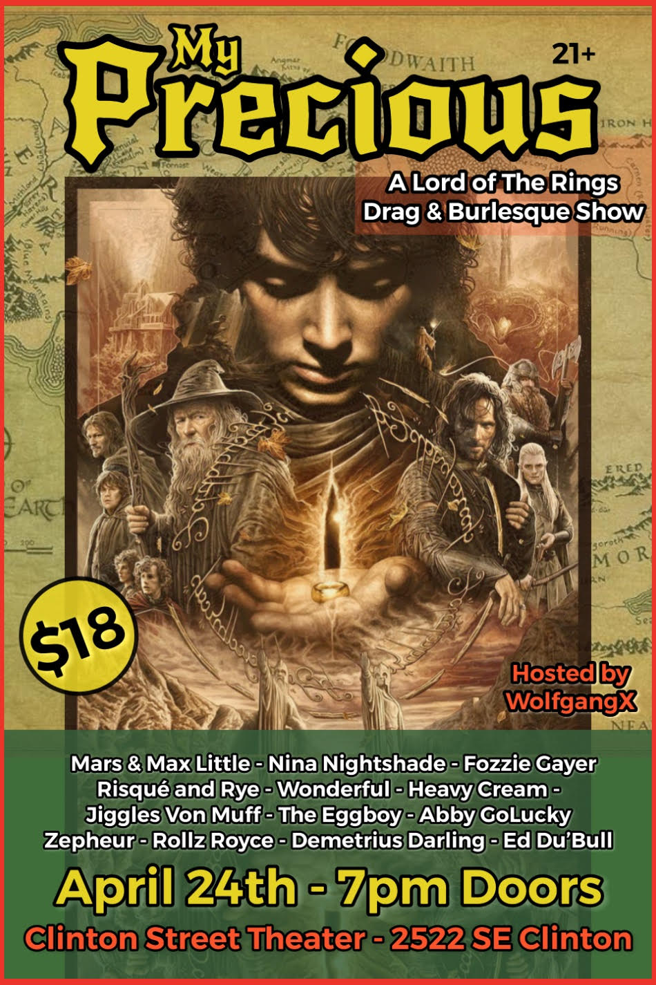 Cult of! My Precious returns for its 4th Year! A night of Drag & Burlesque acts featuring some of your favorite characters from the Lord of the Rings Universe.