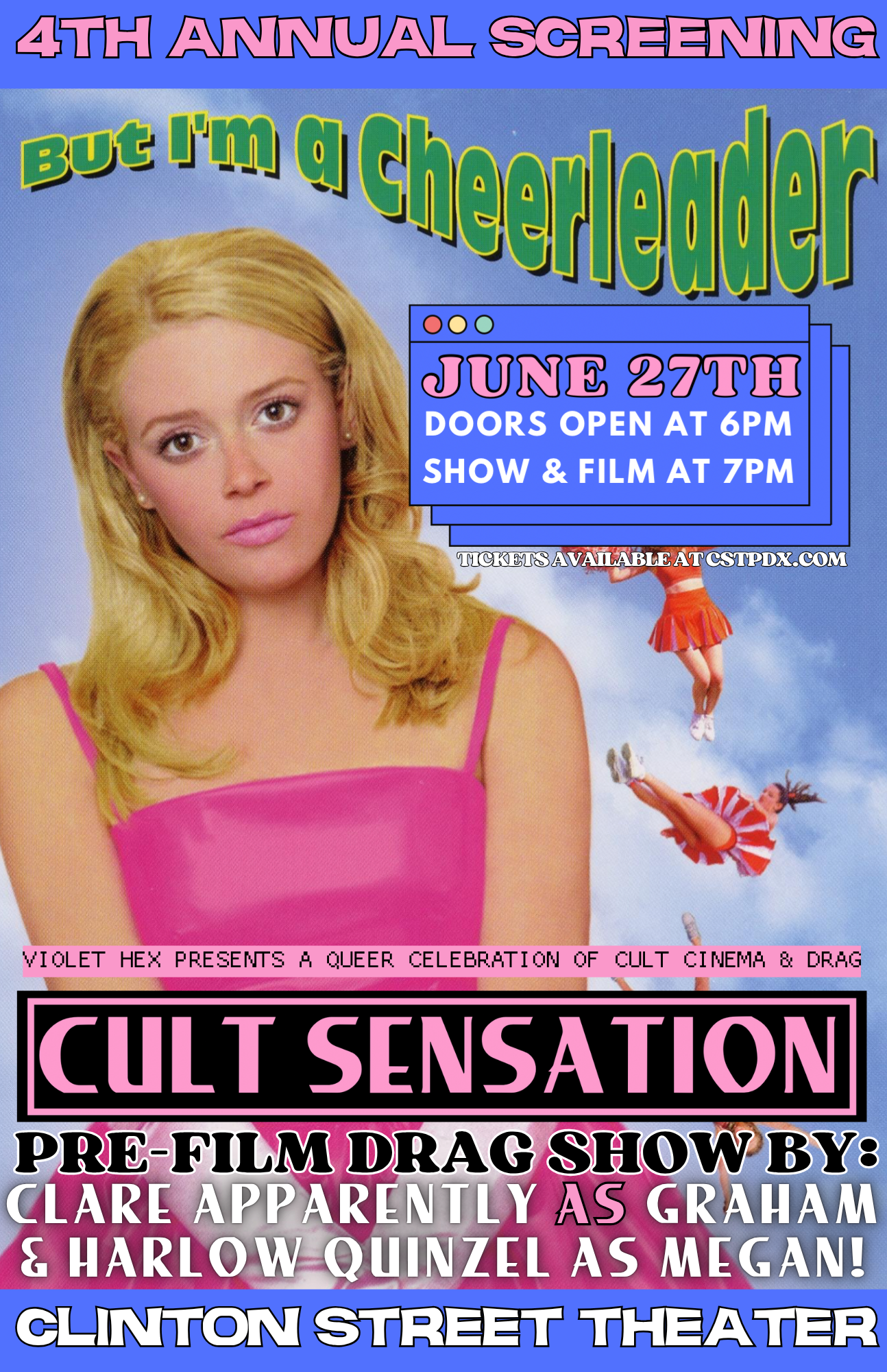 Cult Sensations presents an annual queer celebration & screening of the beloved 1999 camp cult-classic But I’m A Cheerleader featuring a superstar studded pre-film drag show with themed tribute performances to the film’s iconic soundtrack!